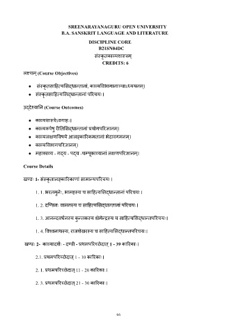 B.A. SANSKRIT LANGUAGE AND LITERATURE